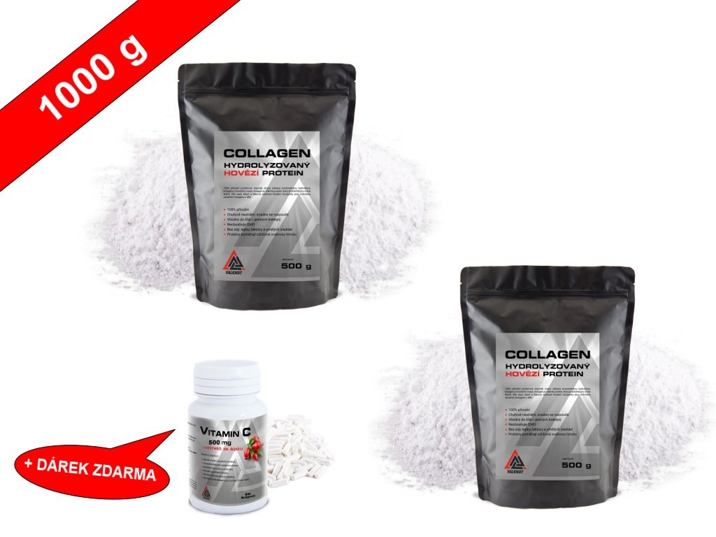 AKCE Collagen Hovězí protein VALKNUT 2x500 g + Vitamin C s šípkem 60 kapslí zdarma