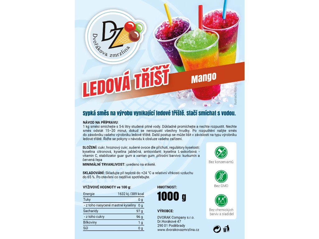 • Sypká směs na výrobu vynikající ledové tříště.